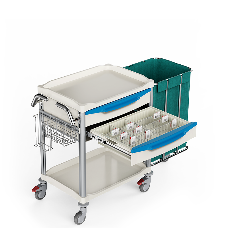 Le chariot de soins et de pansements multifonctionnel, conçu pour le stockage et le transport des pansements, du linge et d'autres fournitures médicales dans les hôpitaux ou les maisons de soins. Il est essentiel dans les situations critiques, permettant aux équipes cliniques de positionner précisément le chariot là où il est nécessaire, en centralisant tous les équipements essentiels.